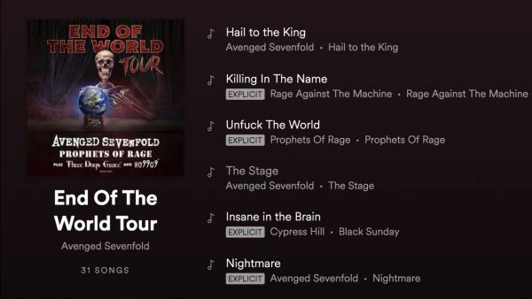 “End of the World Tour” Spotify Playlist.